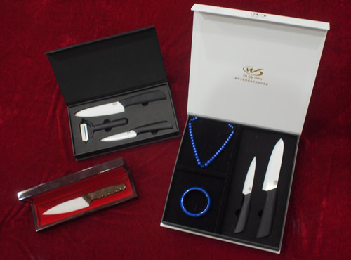 陶瓷刀,外觀如玉石般潔白柔和,色澤圓潤。用于現代廚房。它打磨的刀刃及刀面均勻一致切削靈巧方便,刀刃鋒利,硬度僅次于金剛石,陶瓷餐刀體現的是新世紀新材料的綠色環保概念。